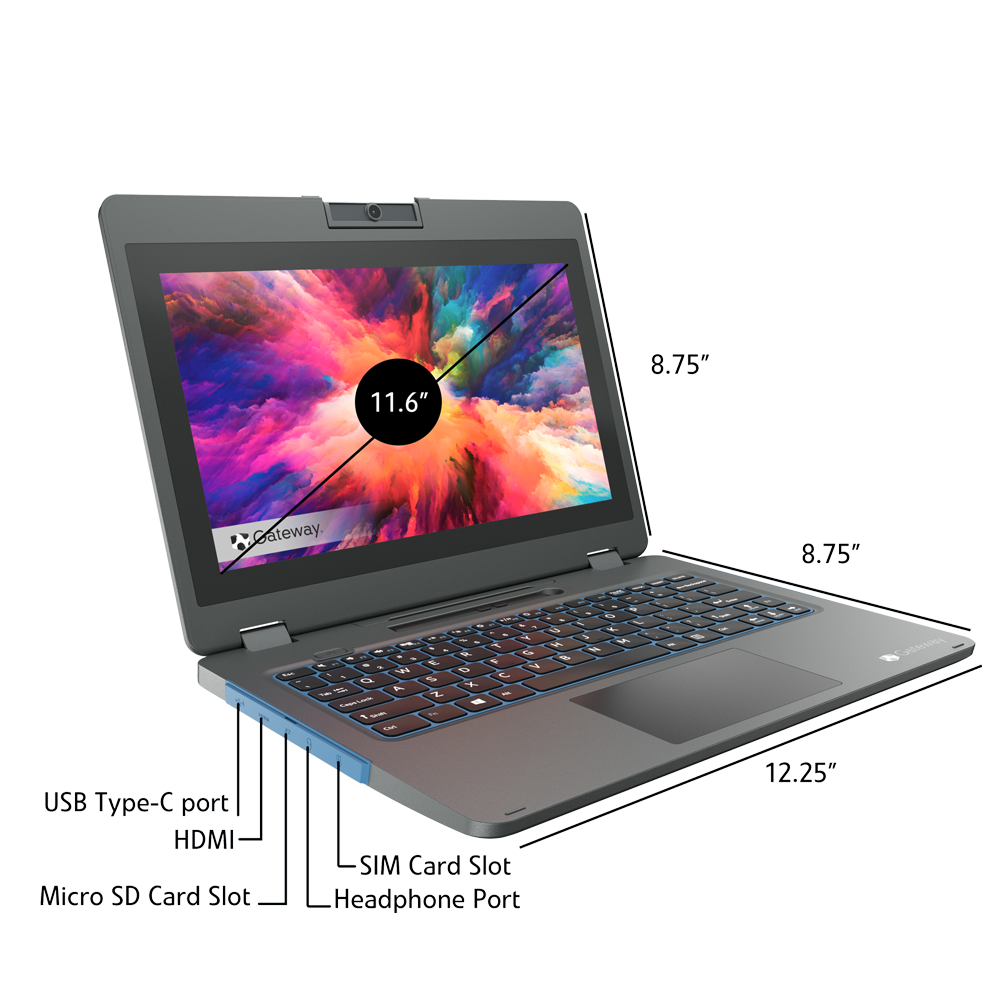 The 11.6” Ultra Slim Notebook from Gateway is the ultimate portable notebook that brings crystal-clear picture for all of your tasks. Rugged and durable in design to keep up with your lifestyle. The computer is powered by a Qualcomm® Snapdragon™ 7c and has 4 GB memory RAM. You’re guaranteed to experience clarity with a 11.6” LCD IPS Display and precision touchpad. The convertible notebook is equipped with Windows 10 Home and a Microsoft 365 Personal 1-year Subscription to make sure you get exactly what you need to get all of your tasks done.